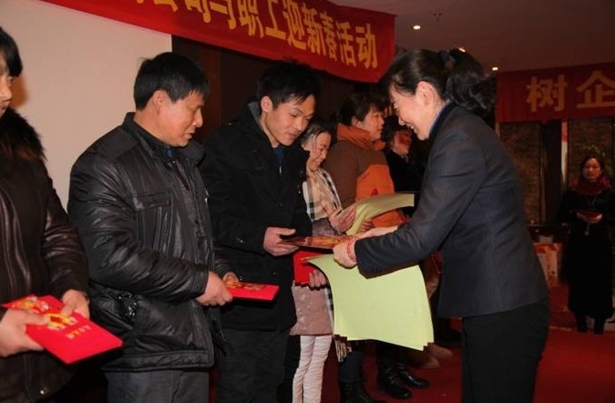 昨天,长兴村镇银行工会来到瑞虹空调和多蒙佳乐,为近400名职工送去装有福字、对联和茶杯、环保袋等物品的“大礼包”,祝福广大职工在新的一年里生活和和美美,早日实现自己的幸福梦。