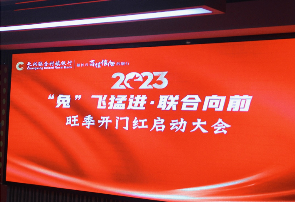 铆足干劲踏征程,大展宏“兔”开门红。为全力以赴决胜2023年旺季开门红,为全年业务发展赢得主动权,12月1日,由杭州联合银行主发起设立的长兴联合村镇银行员工齐聚一堂,在总行胜利召开“兔飞猛进,联合向前”旺季“开门红”启动大会。