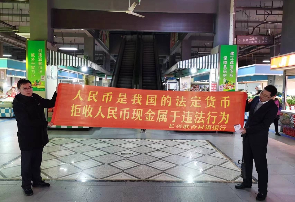 浙江长兴联合村镇银行积极开展专项整治拒收现金宣传工作