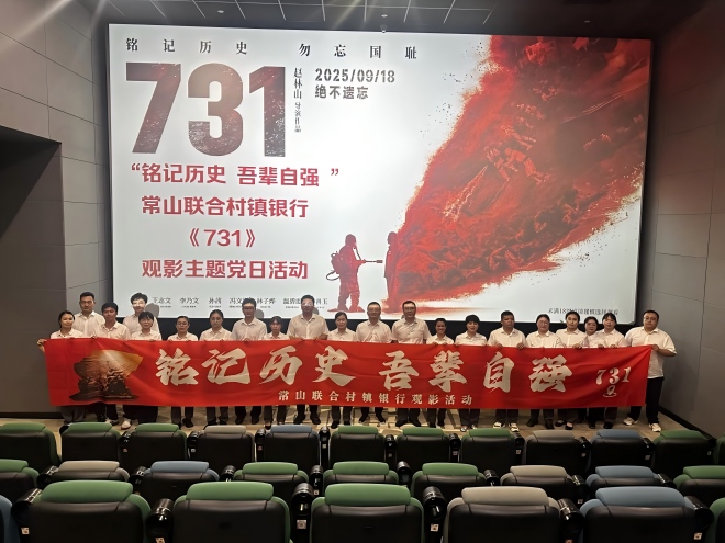 为进一步深化爱国主义教育,厚植家国情怀,9月25日晚,杭州联合银行主发起的常山联合村镇银行工会组织全体员工开展“铭记历史,吾辈自强”主题党日活动,集体观看爱国主义题材电影《731》。通过影像的力量,引导员工在重温历史中汲取奋进力量,强化使命担当,坚守金融服务初心。