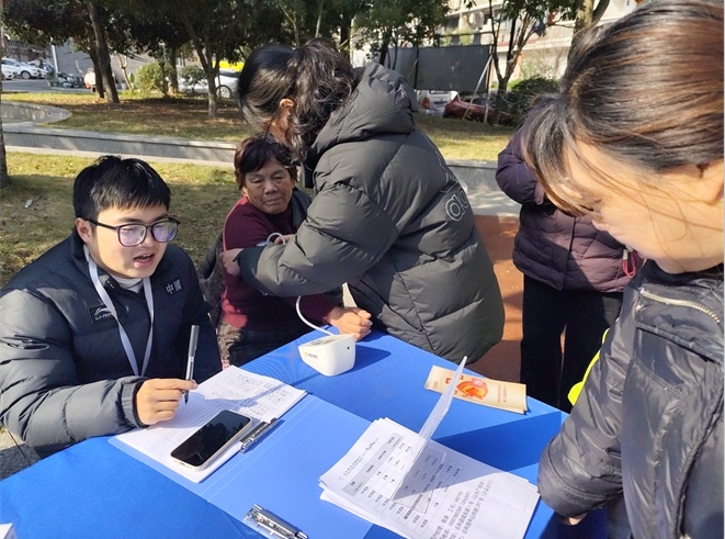 在提供健康服务的同时,反诈宣传也同步开展。临近年关,各类电信网络诈骗案件进入高发期。该行工作人员结合老年人容易中招的“保健品诈骗”“养老投资骗局”等典型案例,用通俗易懂的语言讲解诈骗分子的惯用伎俩和防范技巧。他们还向居民发放反诈宣传单页,手把手指导大家安装“国家反诈中心”APP,提醒居民“不轻信、不透露、不转账”,守好自己的“钱袋子”。