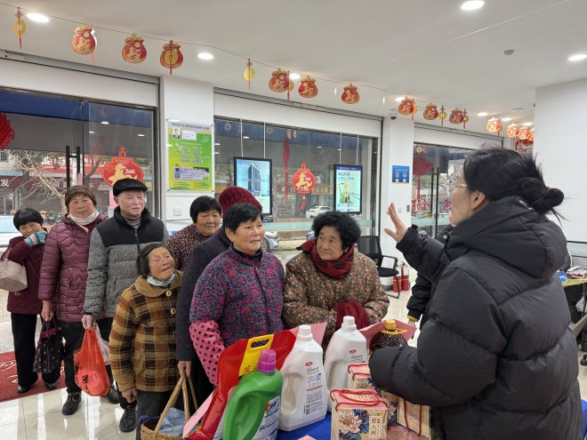 在传递温情的同时,长兴联合村镇银行新槐支行始终将金融安全责任扛在肩上。活动现场,柜面人员同步开展金融知识普及,重点面向老年群体讲解养老诈骗防范技巧,通过发放图文并茂的宣传折页、剖析近期高发的真实诈骗案例、面对面讲解识别技巧和防范要点,为村民带来一堂生动的“防骗必修课”。围绕电信网络诈骗、养老骗局、非法集资等常见陷阱,工作人员引导市民牢记“不轻信、不透露、不转账”的防护原则,让反诈知识真正“入耳、入脑、入心”,为客户的“钱袋子”筑起坚实的安全屏障。