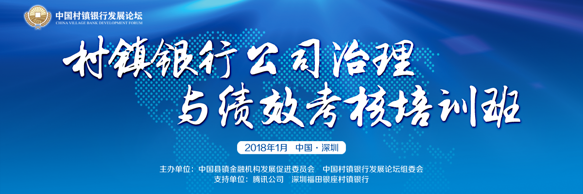 为此,中国村镇银行发展论坛组委会、中国县镇经济交流促进会县镇金融机构发展促进委员会定于2018年1月11—13日,在深圳市举办“村镇银行公司治理与绩效考核培训班”,本次课程将从村镇银行公司治理结构、经营管理机制建设、股权激励和绩效考核等方面进行梳理,帮助村镇银行的高管们整理出清晰的管理思路,完善业务逻辑,助力村镇银行健康、规范、可持续发展。