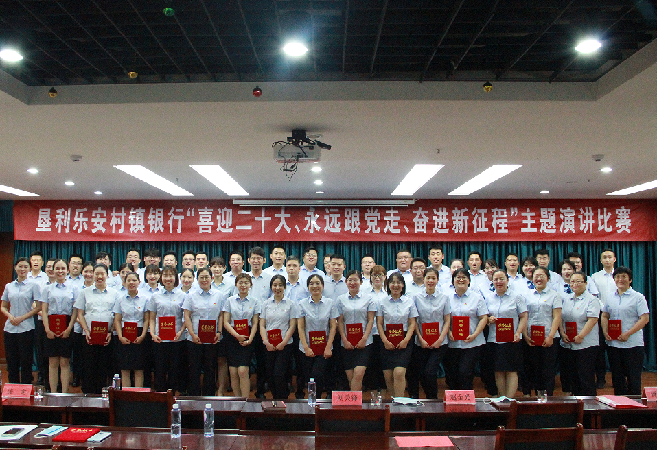 为庆祝中国共青年团成立100周年,迎接党的二十大胜利召开,进一步激发全行员工的爱党爱国热情,在新时代坚定理想信念,传承和弘扬“爱国、进步、民主、科学”的五四精神,充分调动全行员工干事创业的积极性、主动性。6月14日晚,垦利乐安村镇银行于行总部四楼大会议室举办“喜迎二十大、永远跟党走、奋进新征程”主题演讲比赛。
