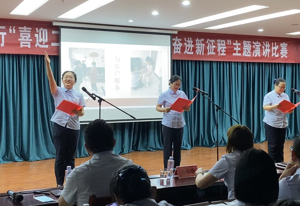 结合我行经营发展、自身的工作经历和生活体会,深刻地阐述了对“喜迎二十大、永远跟党走、奋进新征程”的理解和认识,分享了各自成长的故事和工作感悟,表达了对乐安村行的赤诚之心。演讲现场,或高亢有力、或婉转抒情、或激情澎湃、或娓娓道来,鲜明的观点、生动的事例、真切的情感,感染了现场观众,赢得了阵阵掌声。经过一番激烈的角逐,最终评选出一等奖1名、二等奖3名、三等奖5名。