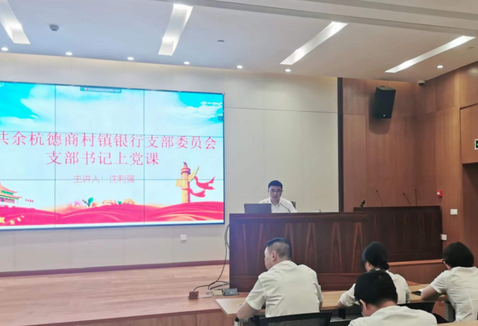 为落实党建引领金融,深入学习中国共产党的百年奋斗史,促进党史学习教育常态化长效化,6月16日,余杭德商村镇银行开展“支部书记上党课”活动。课程由支部书记沈利强主讲,我行全体党员参加了本次学习活动。