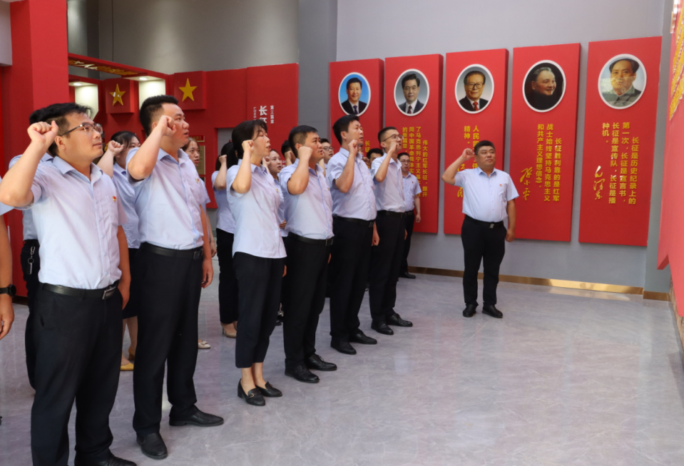 活动中,党员们怀着无比崇敬的心情逐一参观了英雄辈出、长征史诗等各个展厅。通过聆听讲解和实物参观,党员们近距离触摸红色历史,感受革命英烈不畏艰难、勇于牺牲的大无畏精神。随后,在党委书记刘洪金的带领下,全体党员重温入党誓词,表达了“坚定不移听党话,矢志不渝跟党走”的坚强决心。