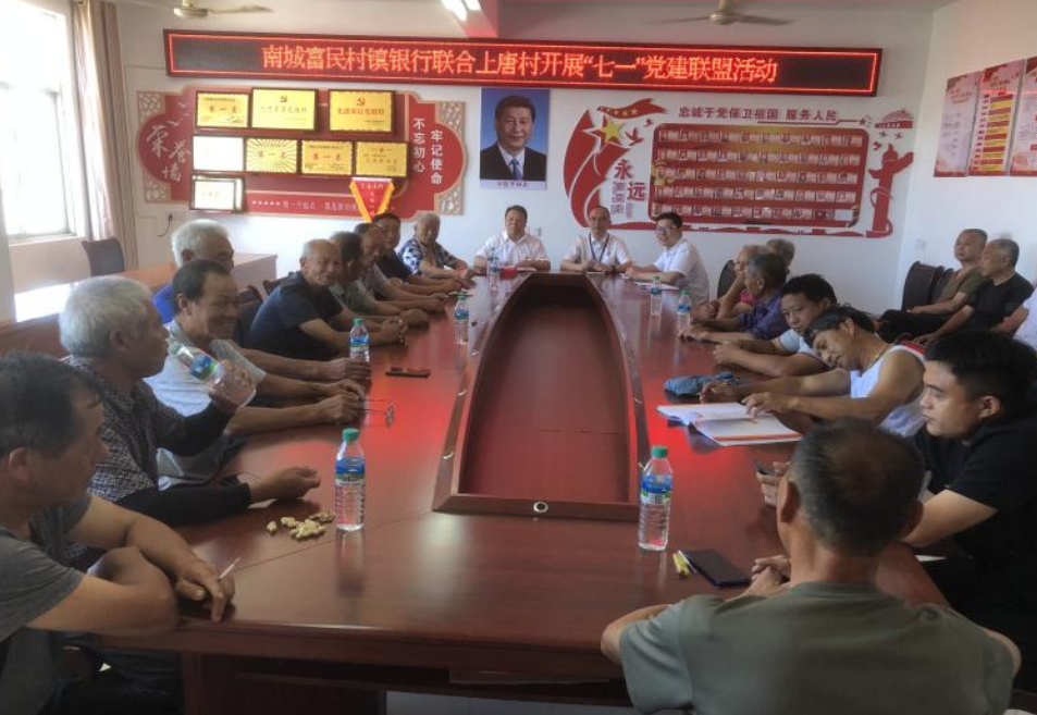 为庆祝中国共产党成立101周年,重温党的光辉历程,歌颂党的伟大成就,纪念党的丰功伟绩,为进一步实施“党建+金融”支持乡村振兴工作,以党建引领发展,以金融助力党建,助力乡村振兴,进一步提升金融服务的有效性、针对性和精准性,促进金融更好融入乡村振兴战略,南城富民村镇银行以“十年富民,感恩社会”为主题分4个会场,联合南城县下辖4个乡镇及社区开展庆“七一”系列活动。