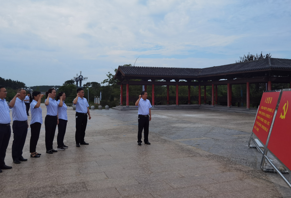 2022年7月4日,凤阳利民村镇银行党员在党支部书记、董事长周详的带领下前往定远藕塘革命纪念馆廉政教育基地及藕塘烈士陵园纪念碑开展清廉金融文化主题党日活动。