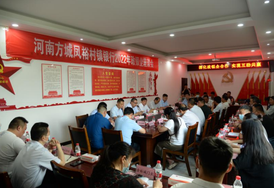 2022年7月6日,河南方城凤裕村镇银行政银企座谈会在县产业开发区成功召开。此次会议得到了县委、县政府及有关部门的高度重视和大力支持,方城县副县长王桥、县直相关部门、人民银行方城县支行、鼎运融资担保公司以及全县36家重点企业代表出席本次座谈会。会议由县金融中心副主任耿新主持。