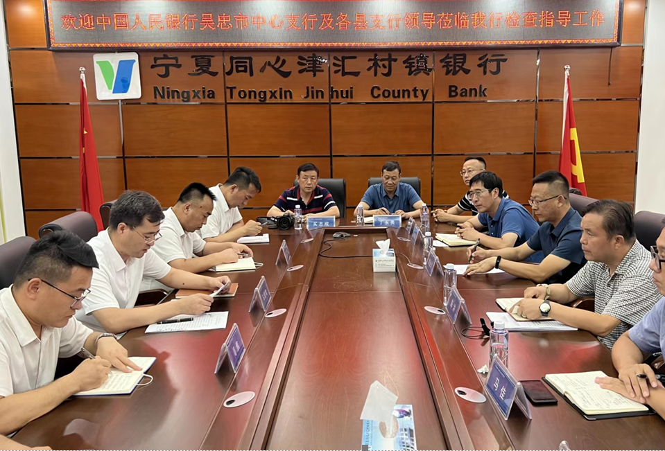7月20日,中国人民银行吴忠市中心支行龚建文行长率中国人民银行吴忠市中心支行征信科、中国人民银行青铜峡市支行、中国人民银行盐池县支行和中国人民银行同心县支行主管领导一行16人到宁夏同心津汇村镇银行调研指导工作。