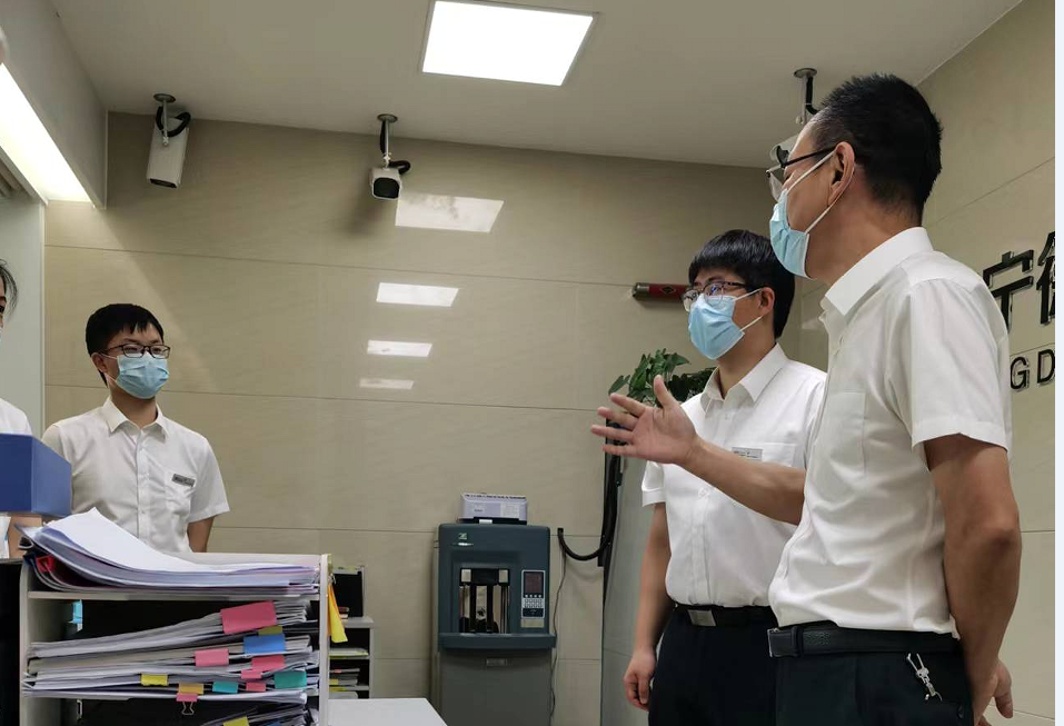 为保障全行金融服务的安全稳定,迎接中共二十大的胜利召开,海宁德商村镇银行何成松副行长、保卫部负责人邓诗贝一行对各支行(营业部)展开2022年半年度安保大检查和优质文明服务检查。