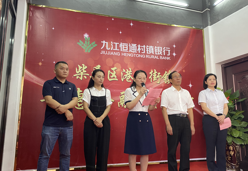 经过紧锣密鼓的筹备,江西九江恒通村镇银行港口普惠金融服务站于8月18日上午在港口街镇盛大开业。此次开业柴桑区常务副区长钱萍、区金融办主任周梦琳、人民银行九江县支行行长王学茂、港口街镇党委副书记曹哲夫等多位领导莅临现场,九江恒通村镇银行全体领导班子成员、各部室负责人等参加了此次开业仪式。