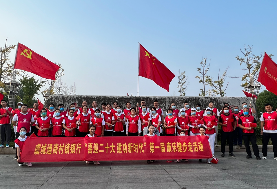 为丰富员工精神文化生活,倡导科学健身理念,增强干部职工的凝聚力,切实将关心关爱员工落到实处,以更加饱满的热情迎接党的二十大胜利召开,10月1日上午,虞城通商村镇银行在人民公园开展“喜迎二十大建功新时代”庆国庆康乐健步走活动。我行领导班子成员、干部职工、客户及家属80余人参加了此次活动。