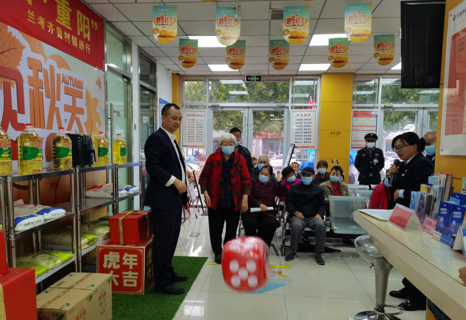 小小厅堂服务多。兰考齐鲁村镇银行以厅堂为阵地,开展了老年人喜间乐见的活动,在一阵阵欢声笑语间提升了与客户之间的黏性。在“掷骰子,赢金蛋”趣味互动中,老同志们兴致高涨、情绪热烈,活动现场欢声笑语不断,将互动氛围推上了高潮。大家纷纷表示此次重阳节活动为他们提供了相聚交流的平台,丰富了业余文化生活,放松了身体,愉悦了身心,感谢兰考齐鲁村镇银行策划了一个贴心、暖心的重阳节活动,让大家度过了一个充实而快乐的节日。