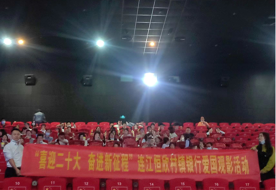 为庆祝新中国成立73周年,进一步弘扬爱国主义光荣传统、喜迎党的二十大召开,提升全行员工爱国主义信念,2022年10月10日晚,连江恒欣村镇银行组织全行员工及员工家属观看爱国影片《万里归途》。