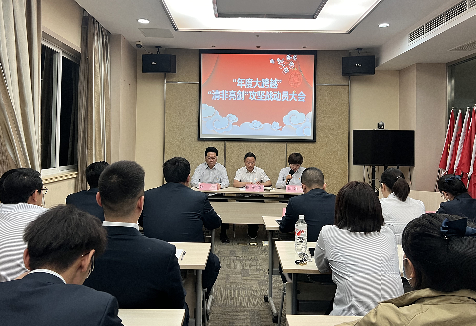 10月12日晚上六点,松阳恒通村镇银行在总行大会议室召开了“年度大跨越”劳动竞赛及“清非亮剑”攻坚战活动动员会议,领导班子、各部室支行负责人、全体客户经理齐聚一堂,全面吹响2022年收关冲刺的号角。