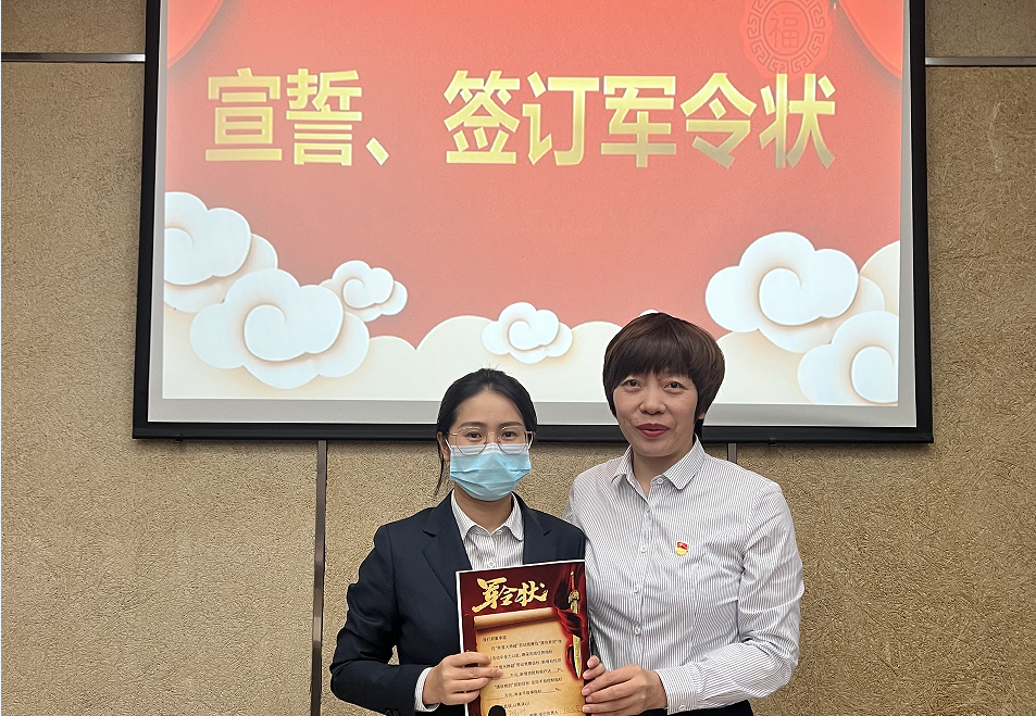 会议的最后,各支行负责人带领支行客户经理上台满怀激情作了宣誓发言。并一一签订了军令状。董事长瞿道真作为本次活动总指挥长,为各业务组一一授旗。