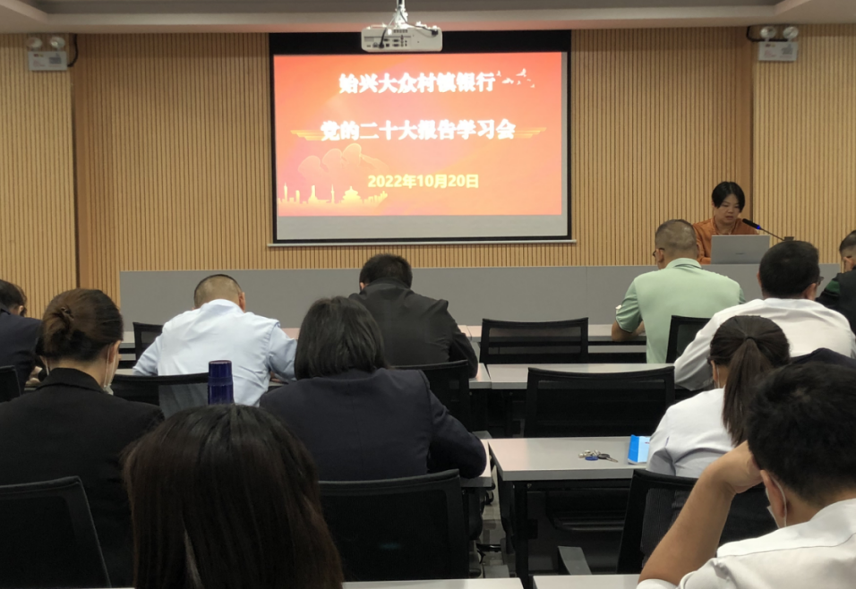近日,全国各地都掀起了学习党二十大精神的热潮,始兴大众村镇银行党支部紧跟学习的脚步,将党二十大精神列入重要政治学习任务,认真部署学习计划,在2022年10月20日,组织全行员工开展党二十大报告学习会,深入抓好学习,领会二十大精神,做到学深学透,契合我行目标思路举措,确保二十大精神能我行各项业务发展中生根发芽,开花结果。