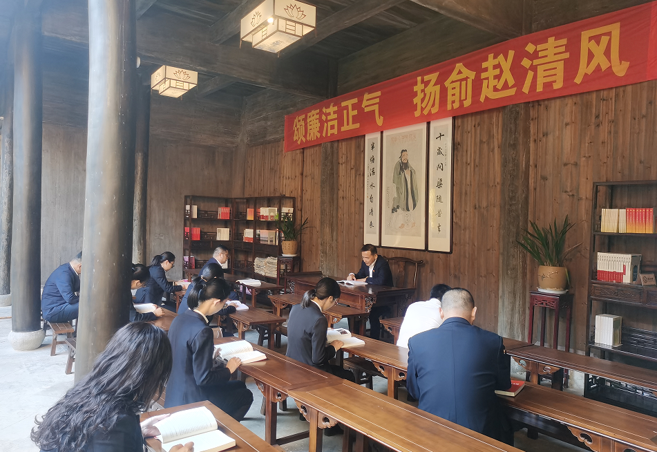 参观结束后,全体人员移步到清廉讲堂,在盛忠桥同志带领下全体党员再次学习《之江新语》之《多读书修政德》,号召全体基层党员干部,既要时刻践行全心全意为人民服务的宗旨,更要不断提高为人民服务的本领,这是全体党员干部的“必修课”,这就需要多读书,读好书,且知行合一。