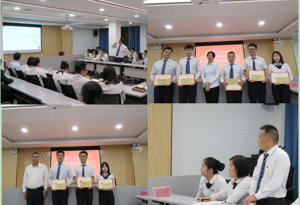此次知识竞赛本着公平、公正、合理的原则,积极发动全体员工参与,按照部门随机选出5支参赛团队,比赛从“学习二十大精神、党史党规党纪、清廉、员工行为规范、个人信息保护知识”等方面选题,设置了必答、抢答、观看党史视频回答、简述题4个环节。