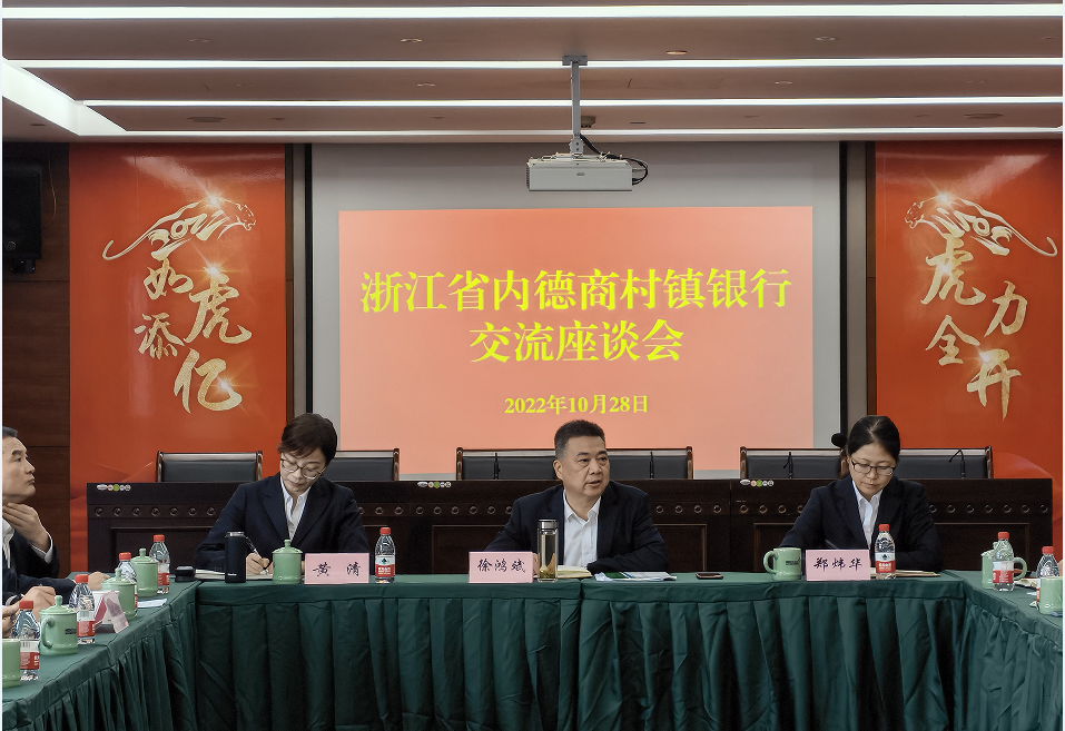 10月28日下午,德清农商银行村镇银行管理总部徐鸿斌主任、郑炜华副主任、黄清科长等一行赴海宁德商组织召开省内德商村镇银行交流座谈会议,余杭德商、定海德商、秀洲德商及海宁德商四家村镇银行领导班子成员参加了此次座谈会议。