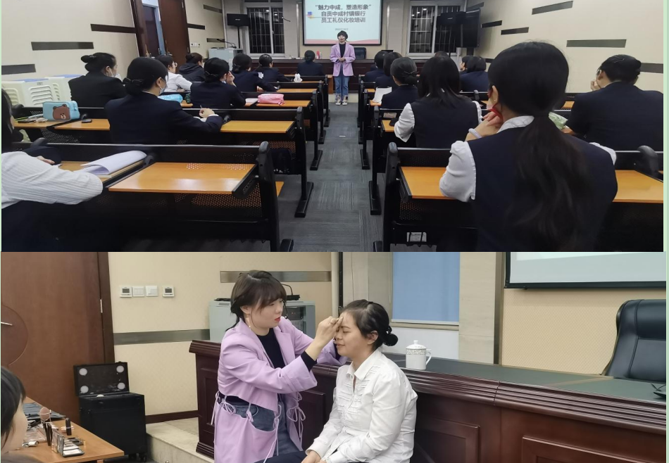 为进一步提升网点服务形象、增强客户服务体验,展现自贡村行员工自信美丽风采,10月26日晚,举办“魅力中成,塑造形象”员工礼仪化妆培训专题课。