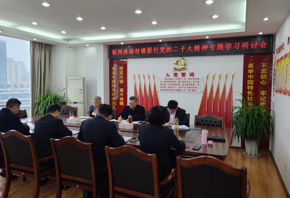 为学深悟透党的二十大精神,认真贯彻落实宿州银保监分局党的二十大精神专题学习研讨会精神,11月12日,宿州淮海村镇银行党委组织开展党的二十大精神专题学习。