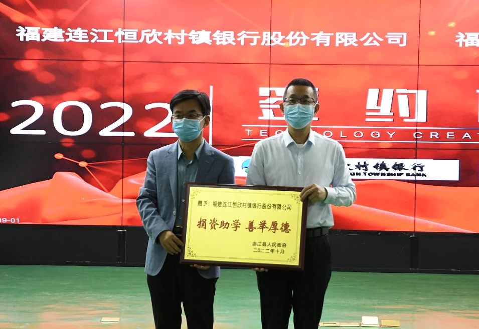 仪式上,副行长孙凯代表连江恒欣村镇银行向连江县教育发展促进会捐赠30万元,用于连江一中专项奖教助教支出。县委教育工委书记、教育局党组书记、局长张宗挺向连江恒欣村镇银行董事长陈仁献授“捐资助学 善举厚德”荣誉牌匾,连江一中校长郑锋介绍了学校工作开展情况并致答谢词。