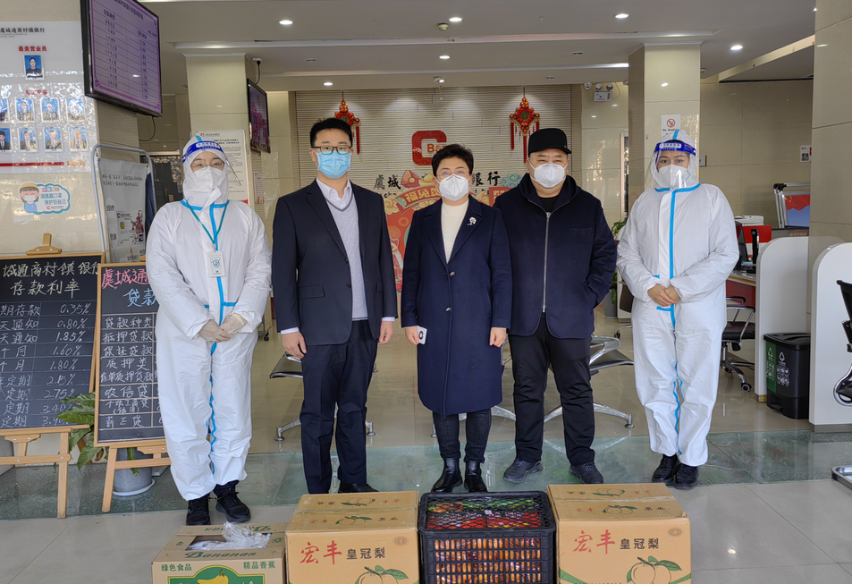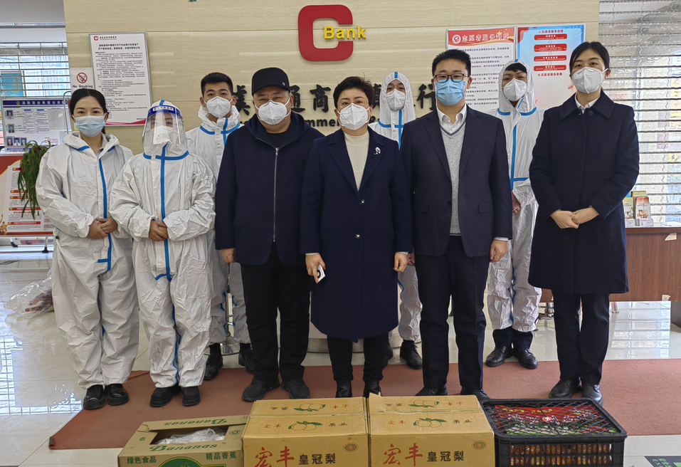 岁末将至,随着疫情防控政策的全面放开,为满足广大客户办理银行业务的需求,虞城通商村镇银行全体员工变身“最美逆行者”,坚持奋战在一线岗位上,让客户在疫情期间也能享受到金融服务,他们把初心写在行动上,把使命落在岗位上,用实际行动践行通商人的责任担当。12月23日,虞城通商村镇银行领导班子一行深入基层网点,慰问特殊时期依然坚守和奋战在一线的工作人员,为他们送去水果、羊肉等慰问品,切实把关怀和温暖及时送到广大员工的心坎上,多措并举为职工筑起爱心防疫屏障,为全行各项业务稳健发展保驾护航。