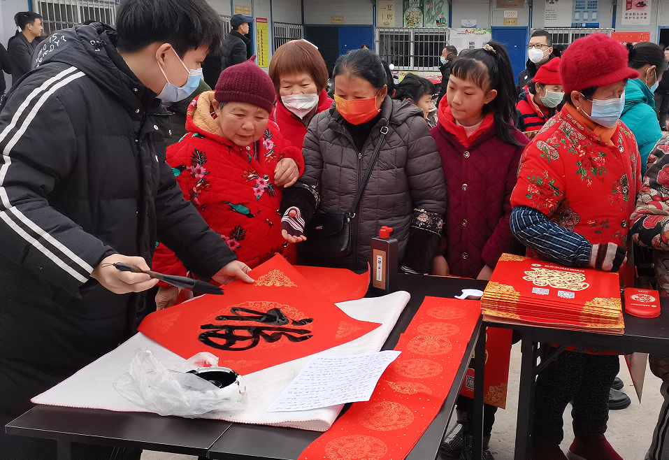 新春送“福”,做好金融服务。活动当日,自贡中成村镇银行以自流井区仲权镇为主宣传阵地举行活动,自流井区金融工作局副局长宋瀚菲、自流井区仲权镇副镇长黄强等领导莅临活动现场指导。一是现场邀请了书法家为村民们书写春联,一早工作人员就为书法家摆好桌案、铺纸研墨,凛冬时节、再冷的寒风也挡不住书法家的热情,“虎传吉顺千家乐 兔守祥和万事新”“金虎归山辞旧去 玉兔下凡迎春来”书法家们将美好的祝福化作一幅幅寓意吉祥的春联和福字。前来参加活动的村民络绎不绝,居民一边排着队一边欣赏赞叹,接过春联后小心翼翼地拿到一旁晾干。现场一位老大爷乐呵呵的说:“你们的活动好啊,我今天一大早就过来等着,请老师给我写了两副春联,希望有个好兆头”。二是开展金融知识宣传,将防非法集资、防电信诈骗、反假人民币、反洗钱以及个人征信等金融知识通过录音在现场循环播放,工作人员现场向村民进行耐心讲解,详细说明了一些常见的金融诈骗手段,帮助他们有效识别和防范金融诈骗以及其他金融知识。