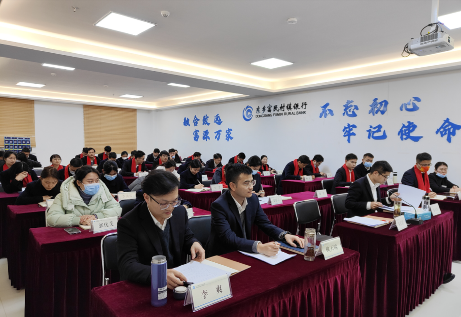 为进一步提升中层干部履职能力,引导全行干部员工真抓实干、奋发向上,以昂扬向上的积极斗志扛起新使命、谱写新篇章,2023年1月14日下午,东乡富民村镇银行召开2022年度中层干部述职工作会议。