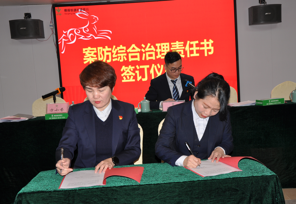 在会上,横峰村行董事长方小芬首先代表行领导班子与各部室、支行负责人签订了案防综合治理责任书。随后该行审计人员通过近几年上饶银保监的检查重点、处罚要点、监管难点等几个方面,分析并讲解了金融从业人员应该注意的合规风险意识,重点围绕“与信贷客户发生非正常的资金往来”、“违规代客保管重要物品”和“违规投资经商办企业”等几个案例,再次给员工敲响警钟。