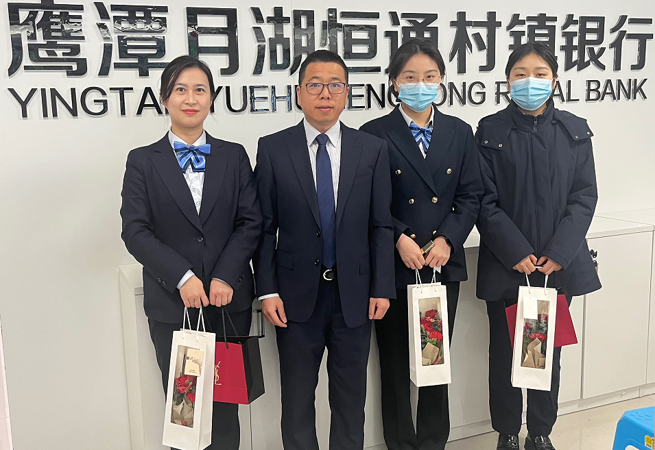 在第113个“三八”国际妇女节来临之际,鹰潭月湖恒通村镇银行领导班子深入各网点部室,为全行的女同志们送上鲜花与礼物,向辛勤工作的她们致以诚挚的问候和节日的祝福,让她们充分感受到鹰潭月湖恒通村镇银行的关爱和温暖,同时肯定了全体女同志们在行里工作上的努力,并激励大家要一直以永不懈怠的精神状态和敢于挑战的奋斗姿态,在自己的岗位上继续奋发向前,展现我们鹰潭月湖恒通村镇银行女同志们的巾帼风采。