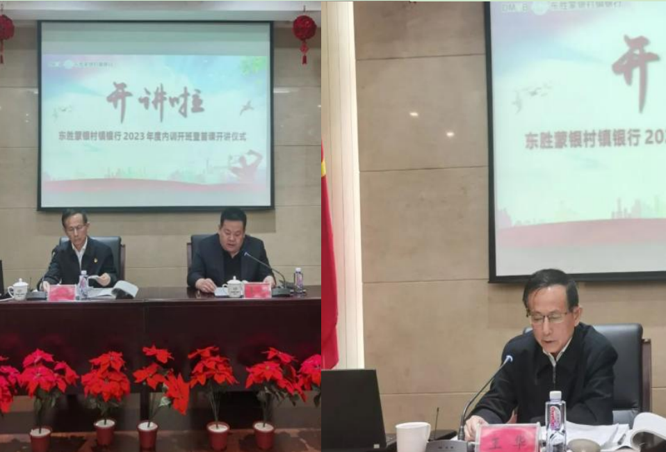 3月7日,东胜蒙银村镇银行2023年度内训开班仪式暨首课培训在四楼会议室举行,首课开讲由自治区十大杰出宣讲员、鄂尔多斯市委党的二十大精神宣讲团成员王华老师主讲,全行全体人员参加了开班仪式,聆听了首课开讲。举办开班仪式标志着东胜蒙银村镇银行2023年度内训工作正式拉开了序幕。