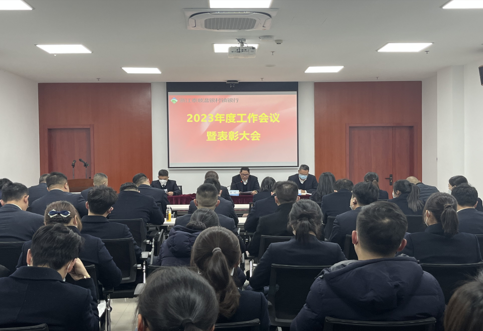 总结表彰鼓干劲,砥砺奋进再扬帆。3月14日晚,泰顺温银村镇银行2023年度工作会议暨表彰大会在总行培训室召开,泰顺温银村镇银行领导班子及全体员工70余人参加会议。会议由副行长林允挺主持。