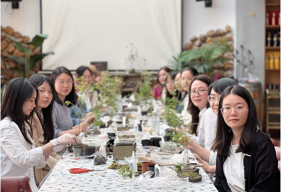 以石为岛,以沙为水。女员工们在手工老师的指导下,纷纷变成巧手花匠,铲土、种植、压实,盖青苔,尽情发挥自己的想象力,在方寸之间寄情山水,编织属于自己的诗情画意,完成了一件件妙趣横生、别具一格的手工作品。