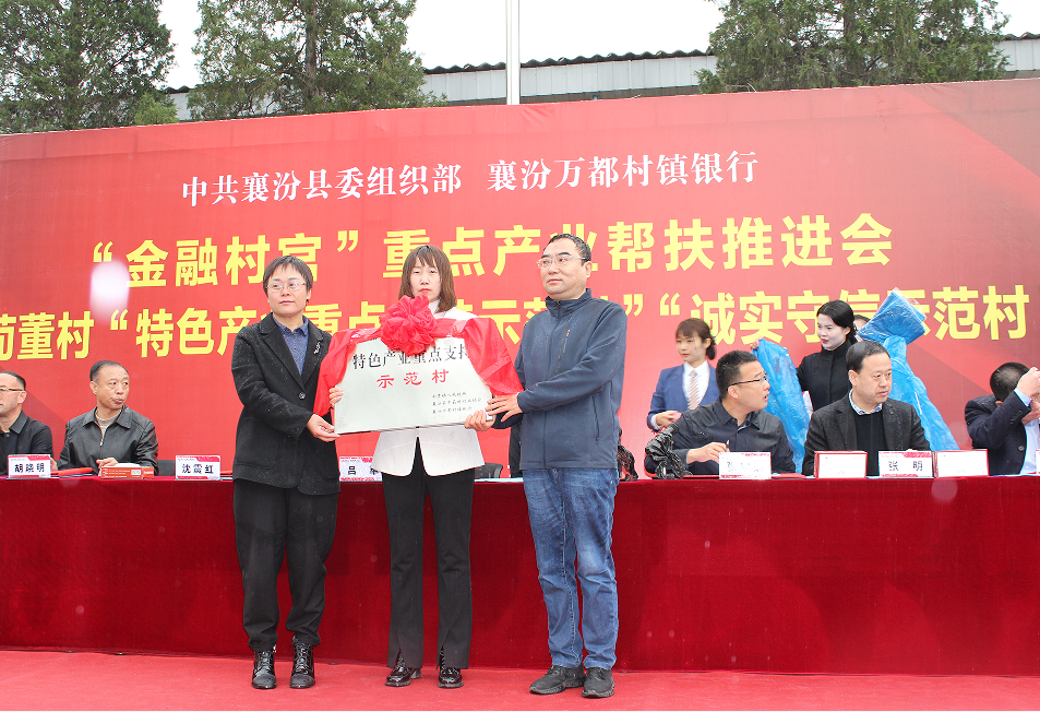 3月16日,中共襄汾县委组织部、襄汾万都村镇银行“金融村官”重点产业帮扶推进会暨荀董村“特色产业重点支持示范村”“诚实守信示范村”授牌仪式在南贾镇荀董村隆重举行。县政协副主席吕军出席会议。
