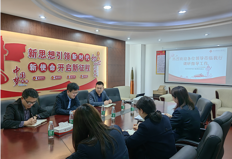 4月7日,吉安县委常委、副县长张俊岭一行莅临吉安稠州村镇银行(以下简称“我行”)调研指导工作,吉安县普惠金融服务中心主任罗军锋,副主任黄建强陪同调研,就优化企业融资环境,助企纾困工作开展调研,李姣行助及相关部门负责人参加了座谈会。