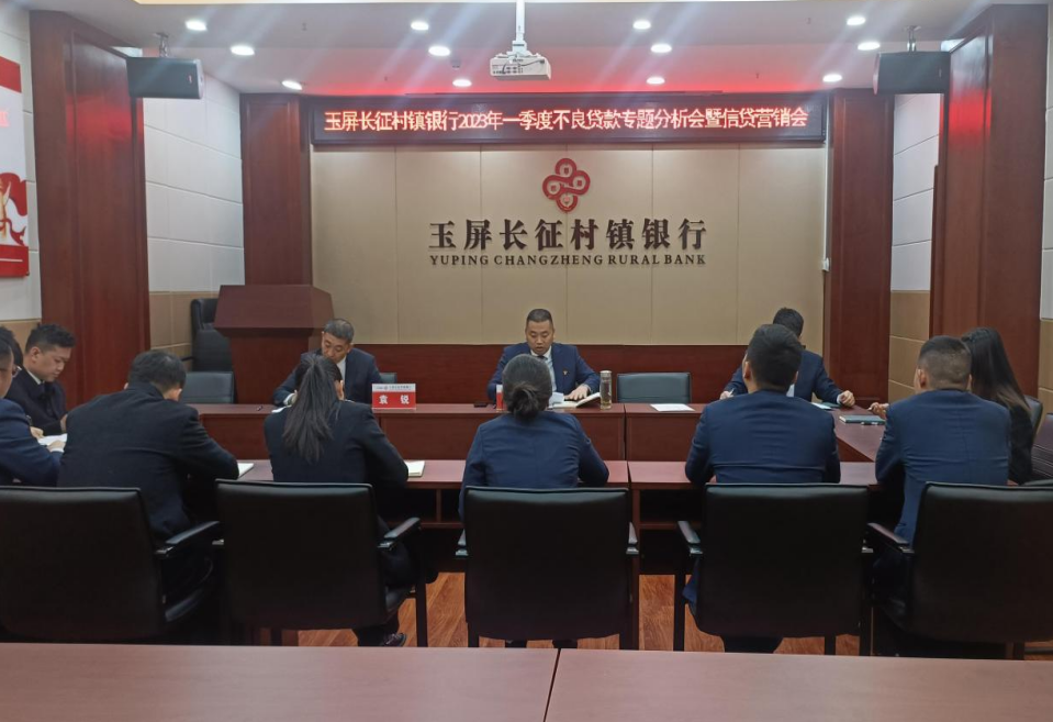 为更好地控制风险,保证玉屏长征村镇银行(以下简称:我行)正常运行。近日,我行召开2023年一季度不良贷款专题分析会,该会由董事长敖贤军主持,行领导、客户经理、风险部员工参加会议。