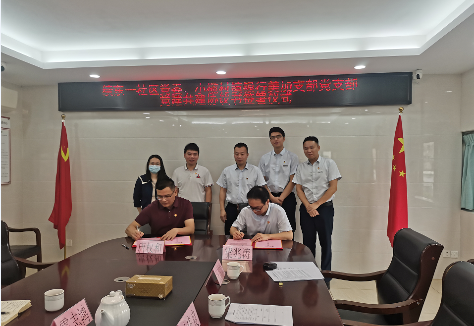 为深入贯彻落实党的二十大精神,提升金融服务“三农”质效,全面推进乡村振兴。2023年4月13日,中山小榄村镇银行美加支行党支部与小榄镇绩东一社区委员会举行“结对共建践初心,党建引领办实事”党建共建签约仪式主题活动。