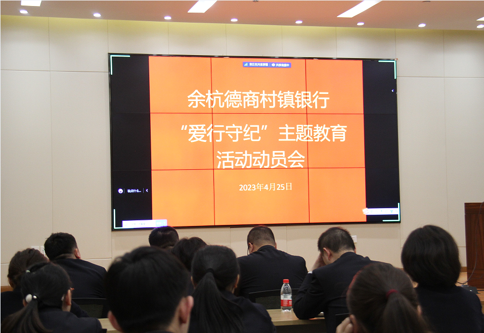 为进一步强化从严治行理念,持续深化员工行为教育,增强员工爱行爱岗意识,夯实爱岗敬业思想根基,4月25日晚,余杭德商村镇银行分区域召开“爱行守纪”主题教育活动动员会。该行领导班子、中层负责人及全体信贷条线人员参加会议。