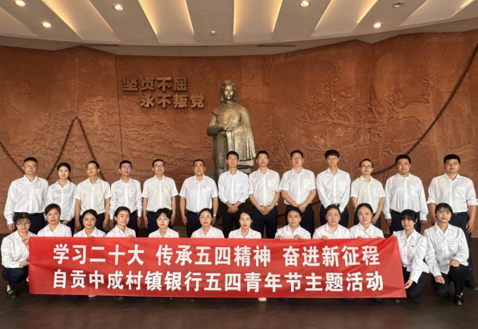 为进一步激发员工爱党、爱国、爱行的深厚情怀,5月4日上午,自贡村行前往“江姐故里”开展“学习二十大 传承五四精神 奋进新征程—自贡中成村镇银行五四青年节主题活动”红色爱国主义教育,弘扬爱国、进步、民主的“五四”精神,各支行、部门青年员工代表参加,感受信仰力量。