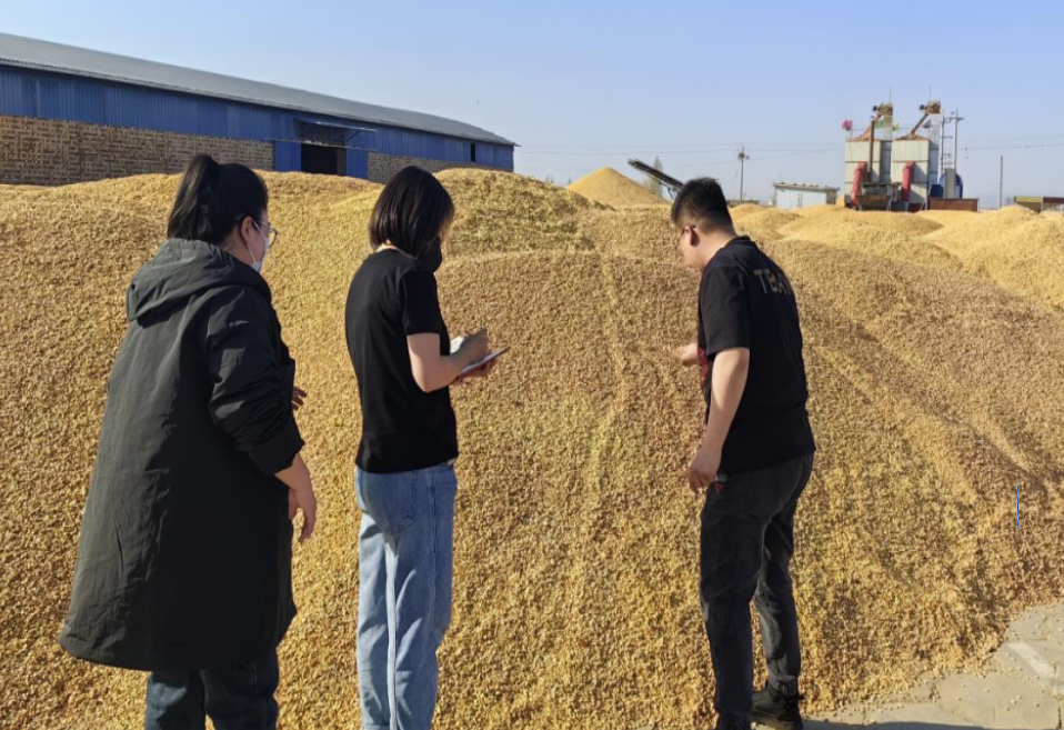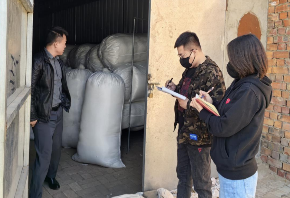 羊绒质押类客户检查完毕后,一行人紧密安排,迅速开展了粮食质押类客户巡检工作。本次检查粮食质押类客户50余户,检查40余户,检查覆盖率88%以上。未实地检查客户均以标准粮库仓储且均已上锁,其余客户检查方式全部为实地检查。检查中质押物种类、质押物数量均无变化,质押物保存状态良好,部分客户因出入库、平仓、监管方式为场地监管等原因不具备上智能锁条件,场地监控设备完好。