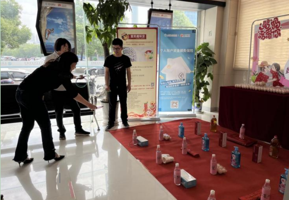 活动当天,我行设置合影点,邀请各位母亲和子女拍一张甜甜的照片,鼓励大家有爱说出来,大胆表达对母亲的感谢和祝福。同时,开展套圈圈活动,来本行办理业务的新老客户均可参与,看着地上琳琅满目的物品,大家跃跃欲试,现场气氛热烈,一片欢声笑语。
