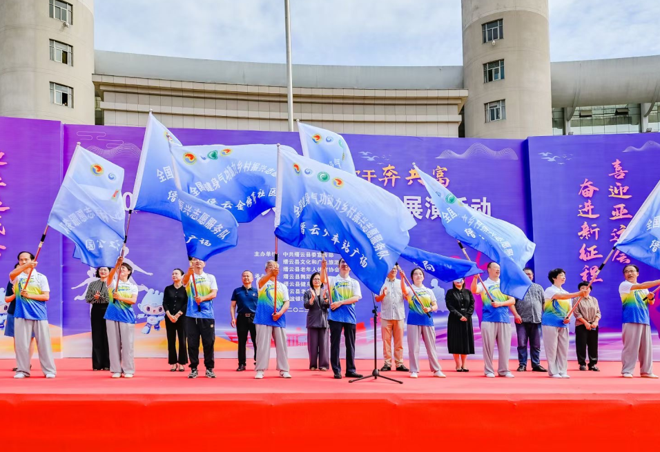 5月16日上午,由中共缙云县委宣传部、县文化和广电旅游体育局、县老年人体育协会主办的“全民健身迎亚运 奋斗实干奔共富”2023年缙云县大型广场文体展演活动在缙云县行政中心广场隆重举行。缙云联合村镇银行健身气功站点被授予全国健身气功助力乡村振兴志愿者服务队队旗。