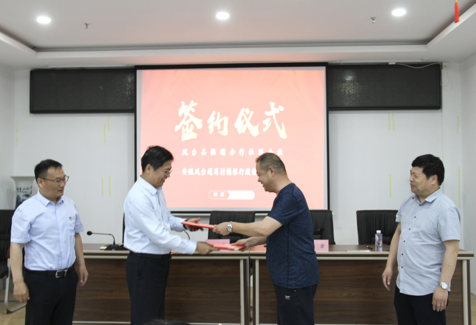 为全面推进凤台县乡村振兴战略实施,探索服务“三农”新路径,构建生产、供销、信用 “三位一体”综合服务体系,切实提升金融服务乡村振兴效率和水平,5月19日下午,凤台县供销合作社联合社和凤台通商村镇银行举办战略合作协议签约仪式。凤台县供销合作社联合社党组书记、理事会主任岳粹陡,党组成员、理事会副主任刘永,凤台通商村镇银行董事长徐涛、行长陈从永等领导及15家供销社成员单位代表出席了活动。