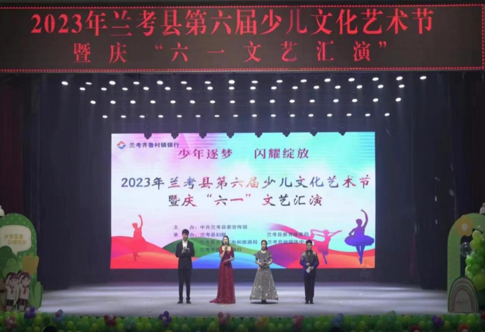 近日,由兰考县县委宣传部主办,兰考县妇联、教育体育局、兰考齐鲁村镇银行等单位联合承办的2023年兰考县第六届“兰考齐鲁村镇银行杯”少儿文化艺术节暨庆“六一”文化汇演在兰考礼堂隆重举行。为全县喜欢艺术、热爱表演的少年儿童搭建一个展示自我的大舞台,进一步提升少年儿童的文化艺术水平,丰富孩子们的文化艺术生活。兰考县委主要领导出席此次活动。