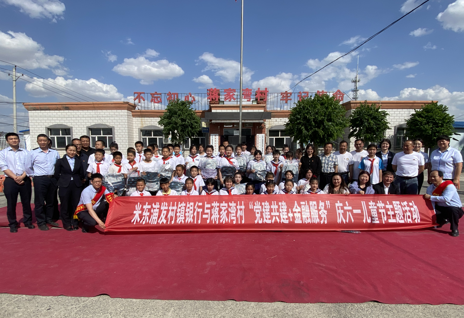 学思想、强党性、重实践、建新功,值此“六一”儿童节来临之际,5月26日,米东浦发村镇银行党支部联合蒋家湾村党支部开展了“党建联建办实事、情暖六一送真情”的主题党日活动,提前为乡村小朋友庆祝“六一”儿童节。