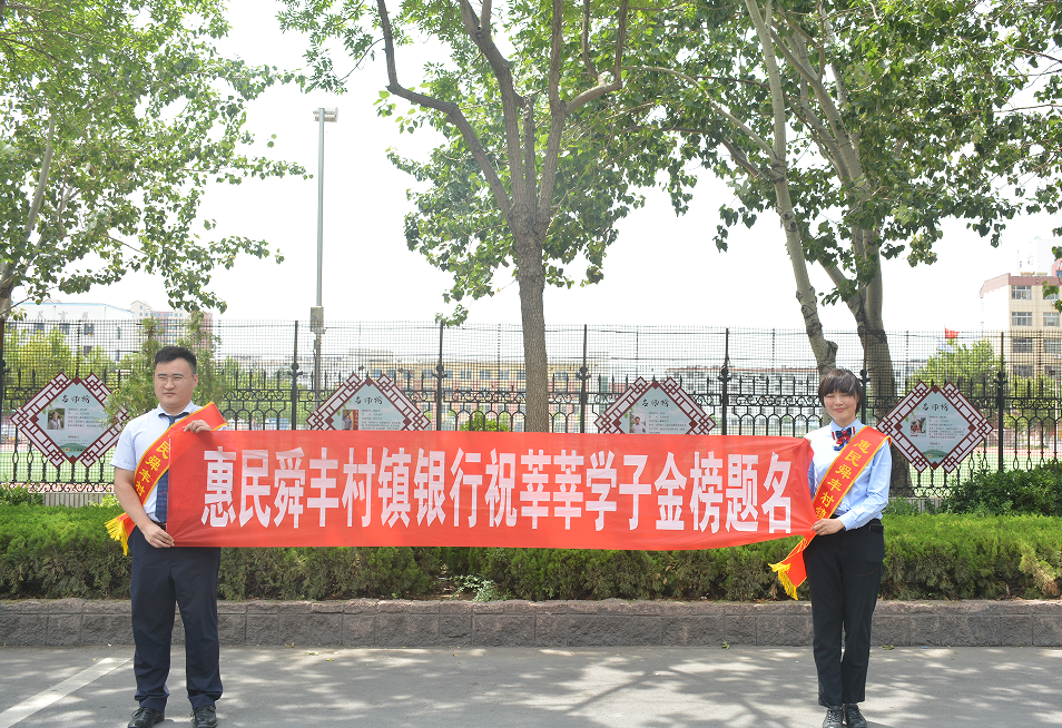 十年寒窗奋展翅,宏图大展正当时。惠民舜丰村镇银行将继续砥砺前行,在积极履行社会责任的同时,把优质的服务延伸至客户身边,把“舜德天下,丰泽万家”的文化理念播撒到广大金融消费者的心中。又是一年高考季,惠民舜丰村镇银行祝祝广大考生“旗开得胜,金榜题名”!